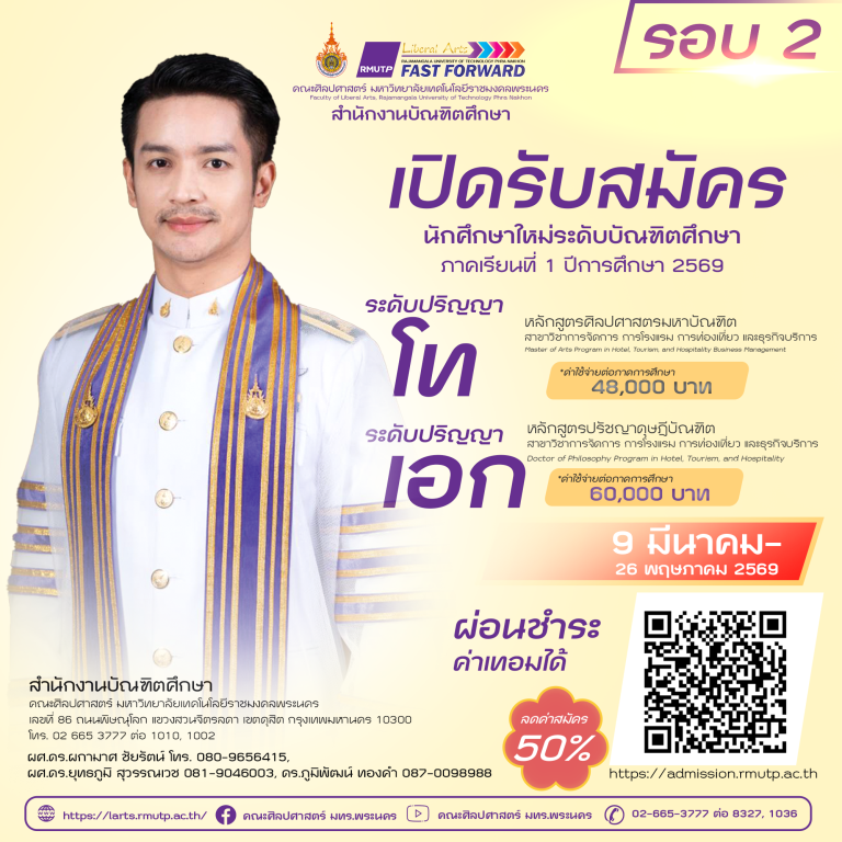 :: เปิดรับศมัครนักศึกษาใหม่ รับสมัครนักศึกษาระดับปริญญาโทและปริญญาเอก (รอบ2) 9 มีนาคม 2569 – 26 พฤษภาคม 2569