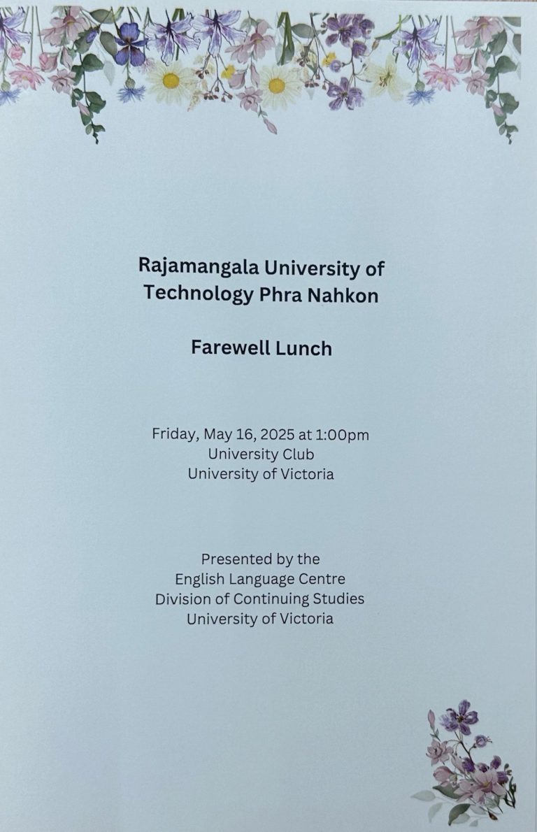 บุคลากรคณะศิลปศาสตร์ ราชมงคลพระนคร ได้รับเลือกเป็นตัวแทนกล่าวขอบคุณปิดโครงการส่งเสริมทักษะด้านภาษาอังกฤษตามความร่วมมือ UVIC-RMUTP ณ ประเทศแคนาดา